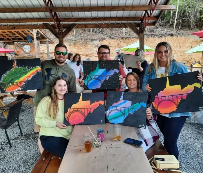 Come on out for a fun evening at Charlie’s Pub in Fayetteville! We will be painting a West Virginia themed painting featuring the New River Gorge Bridge. Event will last approximately two hours and includes all materials- a 16×20 inch canvas, paints, brushes and step-by-step instruction. This class is beginner friendly. Come on out for a fun evening painting and sipping over a great playlist on the back patio. Drinks will be available for purchase! We hope to see you there!